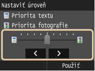 Toto nastavenie dáva prioritu kvalite obrazu pred rýchlosťou. Môžete tiež nastaviť úroveň priority pre kvalitu textu alebo fotografií. Ak chcete zmeniť nastavenie, poklepte na tlačidlá