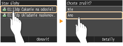 Ak chcete zrušiť odosielanie faxov ihneď po stlačení tlačidla , poklepte na <Cancel> na obrazovke alebo stlačte . Odosielanie faxov môžete zrušiť aj po kontrole stavu faxovania.