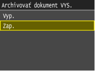 Poklepte na <Archivovať dokument VYS.>  <Zap.>.