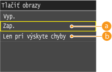 <Ponuka>  <Nastavenia správy systému>  <Pri presmerovaní uložiť/tlačiť>  <Tlačiť obrazy>  <Zap.> alebo <Len pri výskyte chyby>