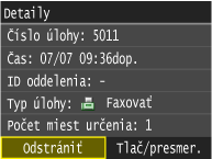 Tlač/Opätovné odoslanie/Zmazanie dokumentov, ktorých presmerovanie sa nepodarilo