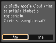 Zariadenie môžete zaregistrovať aj z mobilného zariadenia alebo aplikácie Google Chrome*. Pred dokončením registrácie sa na displeji zariadenia zobrazí nasledujúca obrazovka s potvrdením. Stlačením tlačidla <Áno> dokončite registráciu.