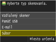 Dostupné miesta určenia pre zdieľané priečinky a súborové servery sú obmedzené na miesta určenia uložené v telefónnom zozname. Ak nie sú uložené žiadne miesta určenia, pred skenovaním do zdieľaných priečinkov alebo súborových serverov uložte miesta určenia do telefónneho zoznamu.