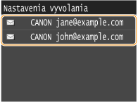 Môžete vybrať miesto určenia z posledných troch použitých miest určenia. Keď špecifikujete predtým použité miesto určenia, stroj tiež nastaví rovnaké nastavenia skenovania, ako je sýtosť, akú ste pri danom mieste určenia použili pri poslednom odoslaní dokumentov.
