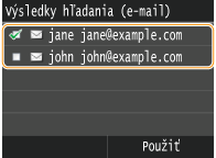 Ak ste už špecifikovali miesto určenia pomocou číselných tlačidiel, pomocou servera LDAP môžete špecifikovať maximálne deväť miest určenia.