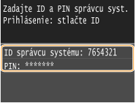 Konfigurácia nastavení cez Remote UI (Vzdialené UR)Zadajte ID správcu systému a kód PIN v časti [System Manager Mode] v Remote UI (Vzdialenom UR) a prihláste sa. Na zobrazenej obrazovke kliknite na položky [Settings/Registration]