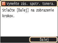 Táto správa vám oznamuje, že čoskoro bude potrebné vymeniť zásobník spotrebovaného tonera. V zásade sa odporúča vymeniť zásobník, hoci môžete pokračovať v tlači.