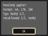 Skontrolujte, či je v stroji vložený papier formátu a typu zobrazeného na obrazovke, a poklepte na <OK>.