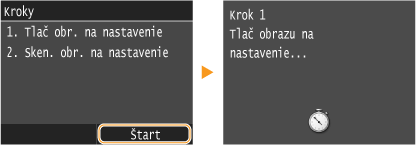 Nastavovací obraz sa naskenuje a spustí sa nastavenie. V priebehu približne 10 sekúnd sa vytlačí druhý nastavovací obraz.