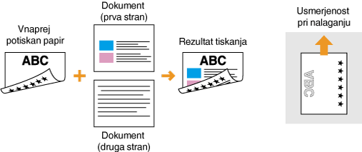 Tiskanje z večnamenskim pladnjemNaložite papir, nastavljen na isto usmerjenost, kot jo ima kaseta za papir, z obrnjenima sprednjo in zadnjo stranjo.