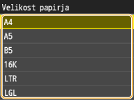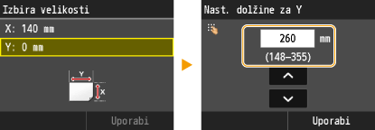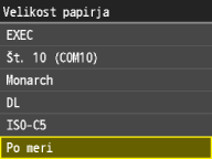 Registriranje velikosti papirja po meri