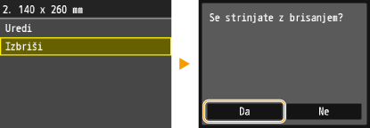 Tapnite registrirano velikost, ki jo želite izbrisati.
