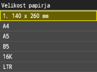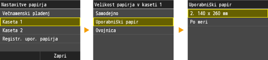 Izbiranje velikosti papirja za kaseto za papir