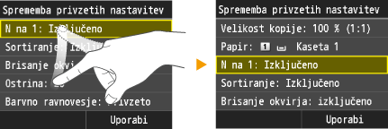 Čas samodejne ponastavitve Če želite spremeniti zaslon, ki se samodejno prikaže, ko je naprava določen čas neaktivna: