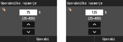 za prilagajanje razpona, lahko premaknete tudi drsnik, tako da ga povlečete. Če podrsnete levo/desno, lahko tudi premaknete drsnik za eno stopnjo v izbrano smer.