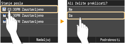 , na zaslonu tapnite <Preklic> ali na operacijski plošči pritisnite