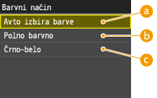 Naprava vsebuje način <Avto izbira barve>, ki prepozna, ali je izvirnik barven ali črno-bel, nato pa samodejno preklaplja med načinoma Barvno in Črno. Med načinoma <Polno barvno> in <Črno-belo> lahko po potrebi preklapljate tudi ročno.