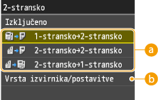 Dve strani dokumenta lahko kopirate na obe strani papirja. Obojestranski dokument lahko kopirate obojestransko ali na dve posamični strani.