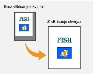 Ko kopirate dokumente, ki so manjši od velikosti izhodnega papirja, se lahko okoli kopirane slike prikažejo črte. Ko kopirate nasprotne strani iz debele knjige, se lahko prikažejo temni robovi. <Brisanje okvirja> omogoča brisanje tovrstnih črt in temnih robov.