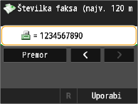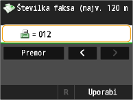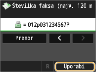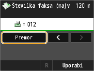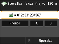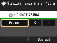 Tapnite <Premor>, da na konec številke faksa po potrebi vstavite premor.