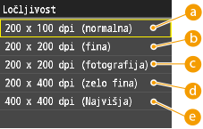 Izberete lahko ločljivost, ki ustreza vaši vrsti dokumenta. Višja ločljivost pomeni čistejše slike, vendar pošiljanje traja dlje.
