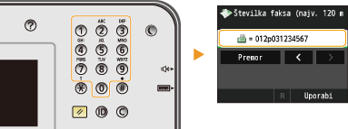 S številskimi tipkami na operacijski plošči vnašate prejemnike.