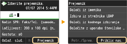 Če je možnost <Omejitev pon. poš. iz dnevnika> nastavljena na <Vključeno>, te funkcije ne morete uporabljati. Onemogočanje uporabe uporabljenih prejemnikov