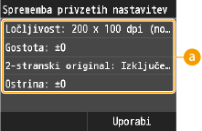 Privzete so tiste nastavitve, ki se prikažejo, ko napravo vklopite ali ko pritisnete