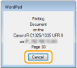 Preklic iz programaV nekaterih programih se prikaže spodnji zaslon. Tiskanje lahko prekinete tako, da kliknete [Cancel] (Prekliči).