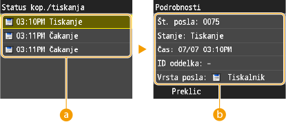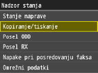 ![]() <Status kop./tiskanja>Prikaže seznam dokumentov, ki so v fazi pošiljanja, kopiranja ali čakajo na obdelavo.
