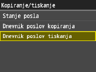 ![]() <Dnevnik poslov tiskanja>Prikaže seznam dokumentov, ki so bili natisnjeni. <OK> se prikaže, če je bil dokument uspešno natisnjen, <Napaka> pa se prikaže, če tiskanje dokumenta ni uspelo, ker je bilo preklicano ali je prišlo do napake.