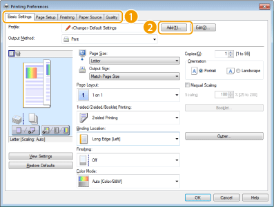 Spremenite nastavitve, ki jih želite registrirati kot profil, in kliknite [Add] (Dodaj).