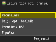 Skenirane dokumente lahko shranite tudi v pomnilniško napravo USB ali jih pošljete kot e-poštne priloge. Dokumente lahko shranite tudi v skupne mape in datotečne strežnike. Te funkcije lahko izberete neposredno na napravi.