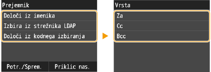 Če želite izvedeti več o uporabi imenika, glejte Izbiranje iz imenika.