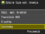 Razpoložljivi prejemniki skupnih map in datotečnih strežnikov so omejeni na prejemnike, ki so registrirani v imeniku. Če v imeniku ni registriranih prejemnikov, jih registrirajte, preden dokumente optično preberete v skupne mape ali datotečne strežnike.