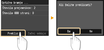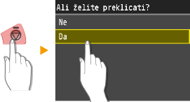 , na operacijski plošči tapnite <Preklic> ali pritisnite
