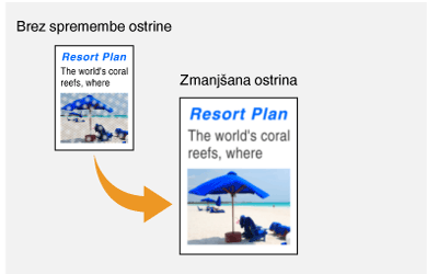 Pred pošiljanjem lahko prilagodite ostrino slike. Povečajte ostrino, če želite izostriti nečitljivo besedilo ali črte, ali pa jo zmanjšajte, če želite izboljšati videz fotografij v revijah.