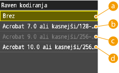 Če želite določiti, ali je mogoče izbrati <Acrobat 9.0 ali kasnejši/256-bit AES> in <Acrobat 10.0 ali kasnejši/256-bit AES>, glejte