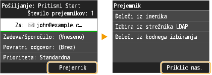 Prejemnika lahko izberete med zadnjimi tremi prejemniki. Ko izberete uporabljenega prejemnika, naprava nastavi iste nastavitve skeniranja, kot ste jih uporabili pri zadnjem pošiljanju dokumentov temu prejemniku.