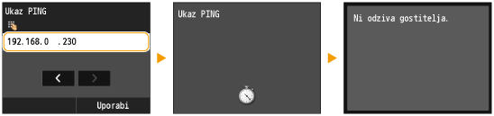 Preverjanje pravilnih nastavitevPoskrbite, da lahko v računalniku odprete zaslon Remote UI (Oddaljeni uporabniški vmesnik). (Zagon vmesnika Remote UI (Oddaljeni uporabniški vmesnik)) Če računalnik ni na voljo, lahko povezavo preverite na nadzorni plošči (Preskušanje omrežne povezave).