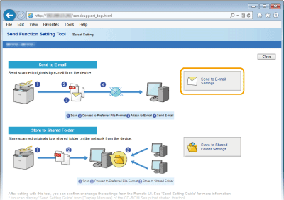 Podrobnejše nastavitve lahko določite v Remote UI (Oddaljeni uporabniški vmesnik) namesto z orodjem Send Function Setting Tool (Orodje za nastavitev pošiljanja) (Konfiguriranje naprednih e-poštnih nastavitev). Send Function Setting Tool (Orodje za nastavitev pošiljanja) je uporabno tudi za tiste, ki želijo hitro dokončati namestitev.