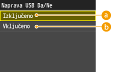 Tiskanje podatkov iz pomnilniške naprave USB lahko onemogočite. Podatkov iz pomnilnika USB ni mogoče natisniti.