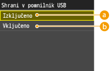 Prepove shranjevanje dokumentov v pomnilnik USB. Skeniranih podatkov ni mogoče shraniti v pomnilnik USB.