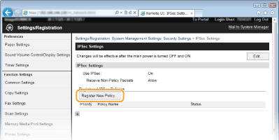 Komunikacijo prek IPSec lahko omogočite ali onemogočite v razdelku <Meni>. Uporabi IPSec