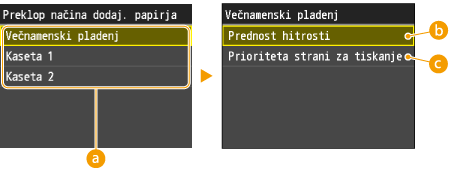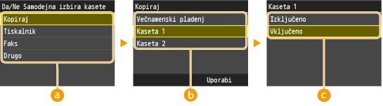 ). Samodejno izbiranje kaset je vedno omogočeno za tiskanje na papir, ki je podajan iz večnamenskega pladnja.