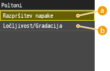 <Privzeta vel. papirja> in <Privzeti tip papirja> ni mogoče nastaviti ločeno. Na zaslonu <Privzeta vel. papirja> določite velikost papirja, na zaslonu <Privzeti tip papirja> pa vrsto papirja.