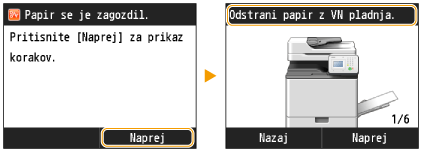 Papir se je morda zagozdil v območju kasete za papir, ki ni prikazano na zaslonu. Izvlecite posamezne kasete in preverite, ali se je v njih morda zagozdil papir.