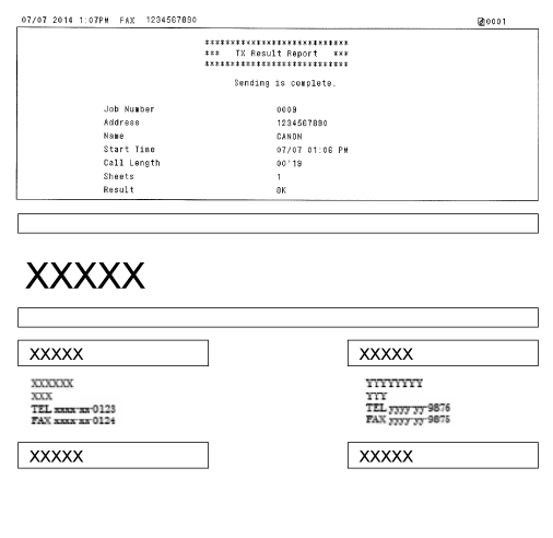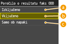 Ko izberete <Vključeno> ali <Samo ob napaki> za <Poročilo o rezultatu faks ODD>, se v poročilo lahko vključi tudi del faksa. Možnost <Vključi sliko TX> nastavite na <Vključeno>.
