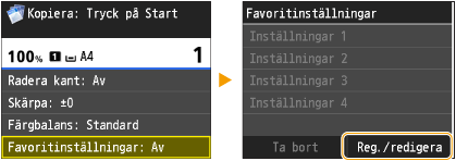 Du måste först registrera vanliga inställningar för Kopiera, Fax och Skanna. ![]() |