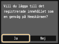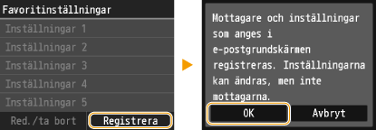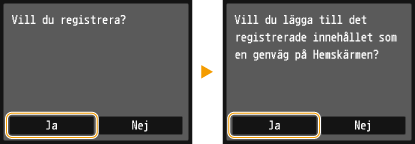 <Ja>.Om du valt inställningar i steg 2 som redan har registrerats, visas en bekräftelseskärm som gäller överskrivning av de gamla inställningarna.